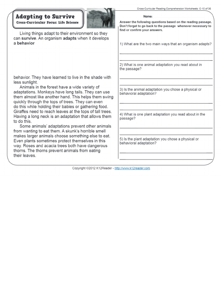 Animal adaptations, animal adaptations vocabulary. This reading comprehension worksheet is designed for fourth grade level readers and includes reading comprehension questions, vocabulary exercises, and a writing prompt. We understand that you may only want to use our services for worksheets and may not want to upgrade your account. A collection of english esl animals worksheets for home learning, online practice, distance learning and english classes to teach about.
